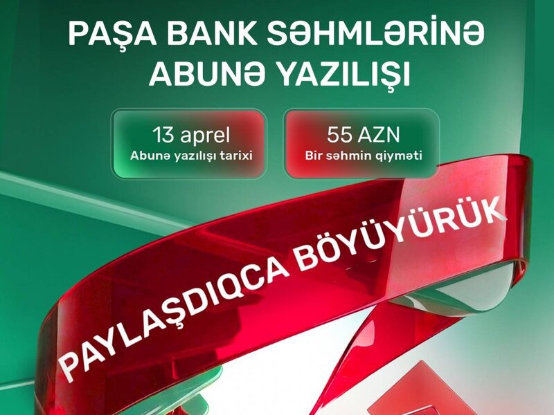 PAŞA Bank tarixi İPO-ya start verir - 1 SƏHMİN İLKİN YERLƏŞDİRMƏ QİYMƏTİ MƏLUM OLDU