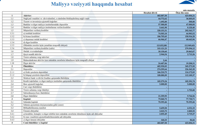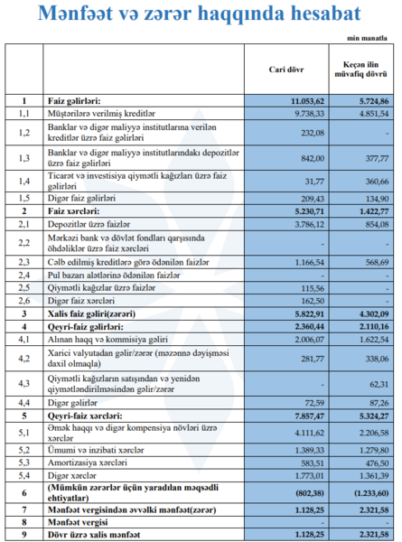 Bank 2025-ci ilin ilk rübünü 2 milyon 322 min manat xalis mənfəət ilə bağlamışdı.