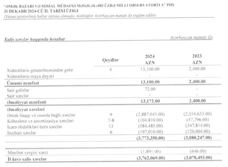 "Əmək Bazarı və Sosial Müdafiə Məsələləri üzrə Milli Observatoriya" PHŞ 2024-cü ilin yekunlarına dair xalis xərclər haqqında hesabatını açıqlayıb.