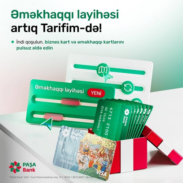 Yeni imkan sayəsində biznes sahibləri 12 aylıq müddət ərzində əməkhaqqı ödənişlərinin məbləğini və əməkhaqqı kartlarının sayını əvvəlcədən planlayaraq, bu xidmətlərdən daha sərfəli şərtlərlə faydalana biləcəklər. Əməkhaqqı layihəsinə "Tarifim" ilə qoşulan bizneslər əlavə olaraq pulsuz korporativ biznes kartı və əməkhaqqı kartları da əldə edəcəklər.