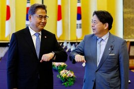 Yaponiyanın xarici işlər naziri Cənubi koreyalı həmkarı ilə müharibə dövrünün əmək problemlərini tezliklə həll etmək barədə razılığa gəlib. Bu barədə razılaşma Hayaşi Yoşimasanın Cənubi koreyalı həmkarı Park Gin ilə iyulu