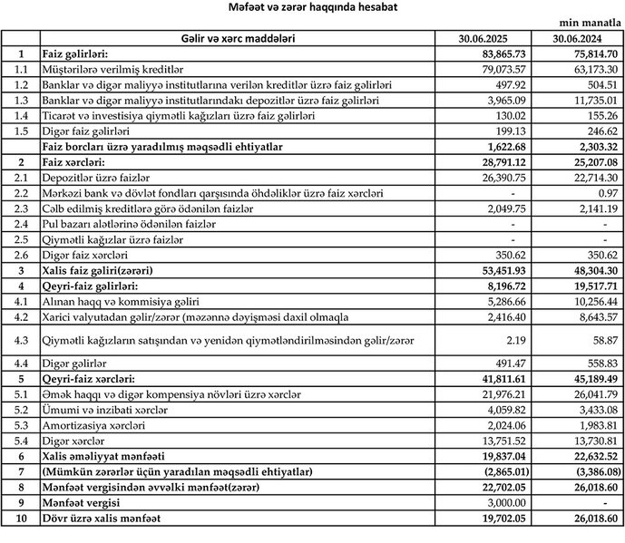 "Yelo Bank" ASC 2025-ci ilin 1-ci yarısını (yanvar-iyun) 19 milyon 702 min manat xalis mənfəət ilə başa vurub. Bank ötən ilin eyni dövrünü 26 milyon 18 min manat xalis mənfəət ilə bağlamışdı. Beləliklə, "Yelo Bank"ın xalis mənfəəti 2025-ci ilin 1-ci yarısında ötən ilin eyni dövrü ilə müqayisədə 6 milyon 316 min manat və ya 24,3% azalıb.
