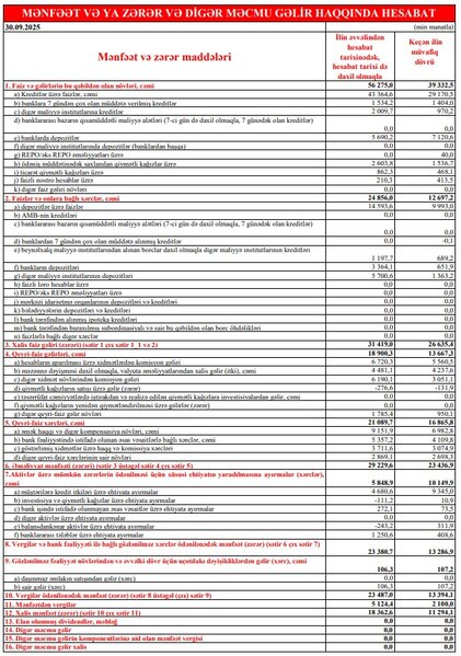 Marja.az xəbər verir ki, hesabat dövründə bankın faiz gəlirləri ötən ilin analoji dövrü ilə müqayisədə əhəmiyyətli dərəcədə artaraq 39 milyon 332 min manatdan 56 milyon 275 min manata yüksəlib. Artım 16 milyon 943 min manat və ya 43,1% təşkil edib. Bu dinamika bankın kredit portfelinin genişlənməsi əlaqələndirilə bilər.